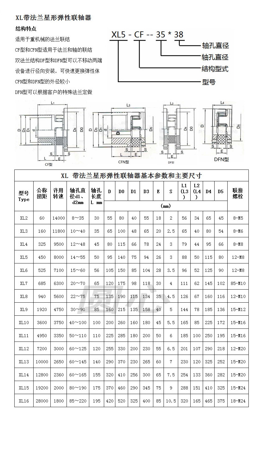 XL star type elastic coupling with flange
